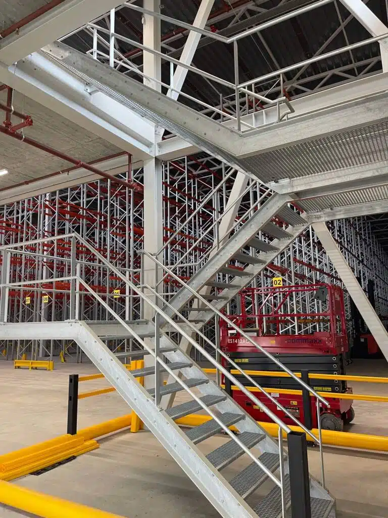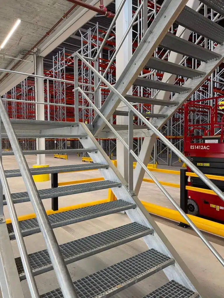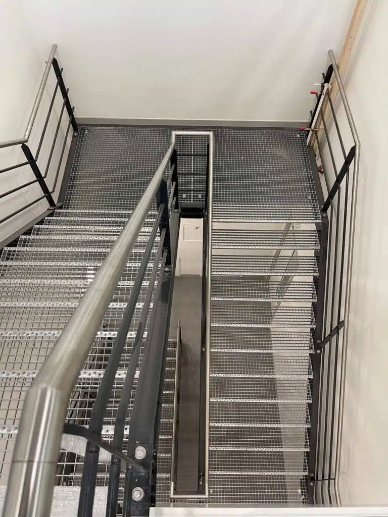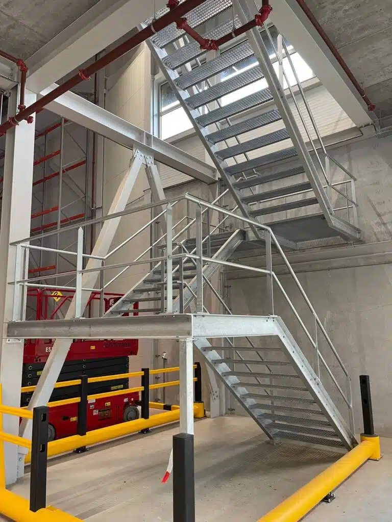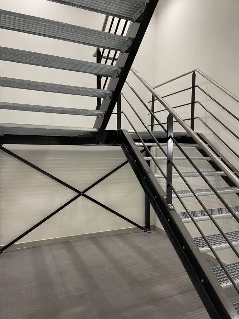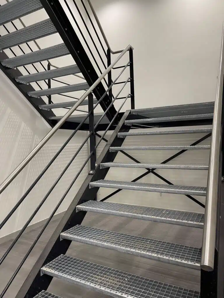 Naast de stalen spiltrap heeft Janssen Staalwerk B.V. ook gezorgd voor vluchttrappen in zowel de hal als het warehouse kantoor. Deze vluchttrappen zijn essentieel voor de veiligheid van de werknemers en bezoekers, en zijn met zorg ontworpen en geïnstalleerd volgens de geldende veiligheidsnormen.