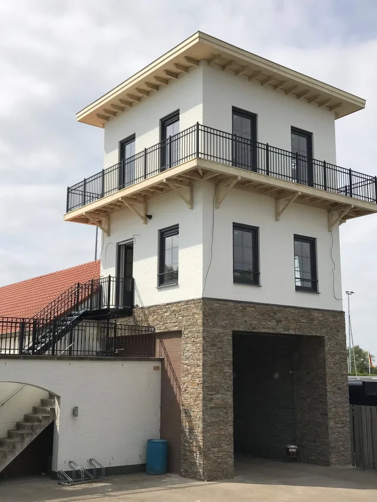 Het Oolderhuuske, gelegen in de sfeervolle haven van Roermond, is een charmante Bed & Breakfast waar gasten kunnen genieten van een ontspannen verblijf. Voor dit prachtige etablissement heeft Janssen Staalwerk B.V. een trap met bijbehorende balustraden en balustraden rondom de loopbrug vervaardigd, allemaal in de stijl met een moderne twist die perfect aansluit bij de aanwezige balustrade op het dakterras van het horecagedeelte.